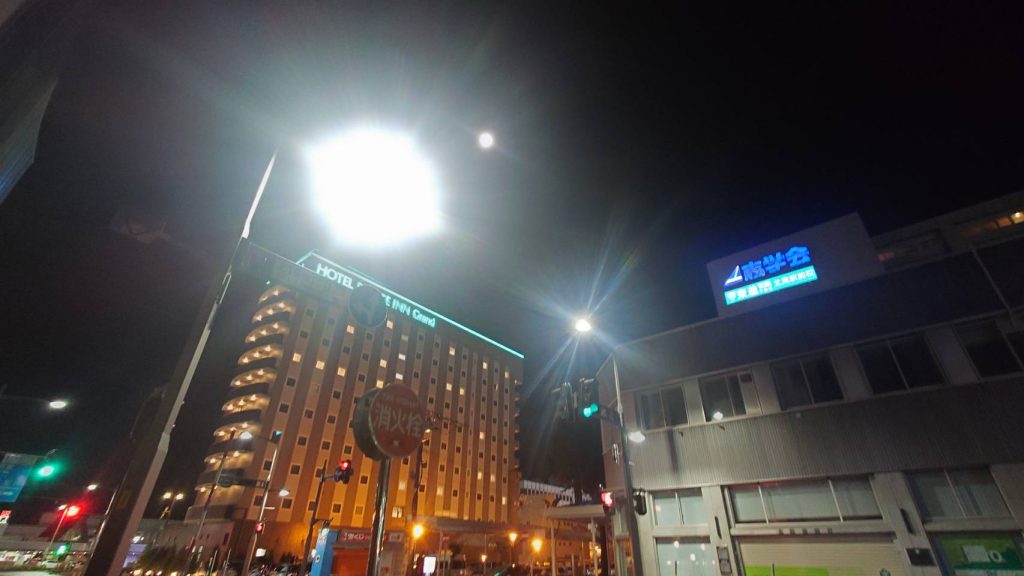 あっ、そうだ、忘れておりました。。。本日、中秋の名月の日でしたね。北見で見る月は、きれいでした。写真を1枚。外灯が一緒に入ってしまいました。。どれが月かわかりますか(笑)。外は、吐く息が白くなっていました。北見盆地、寒っ。。