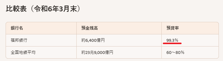 つまり、預金で預かったお金の99.3%を貸し付けている銀行です。こんな銀行全国にあるんですね。