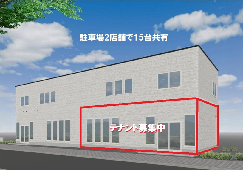 あと、今建築中の自衛隊前の1階店舗、2階アパート。1階のテナントは半分ずつ2店舗でシェアして貸すんですが、蕎麦屋さん申し込みが入ったので、ちょっといたずれに、どんなイメージになるか、AIの力を借りて作らせてみました。
