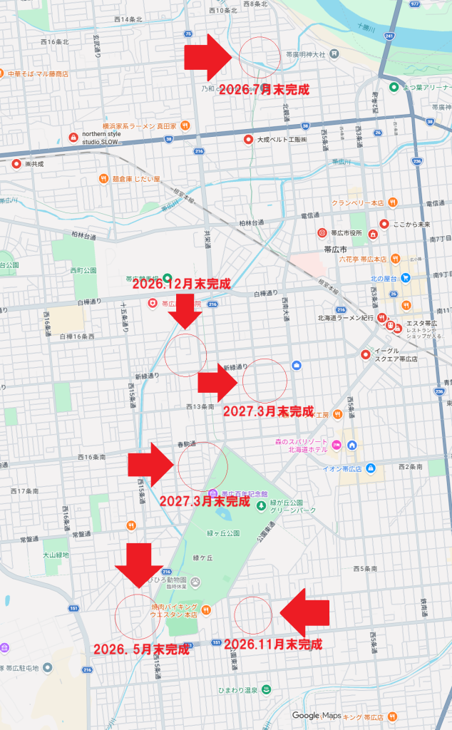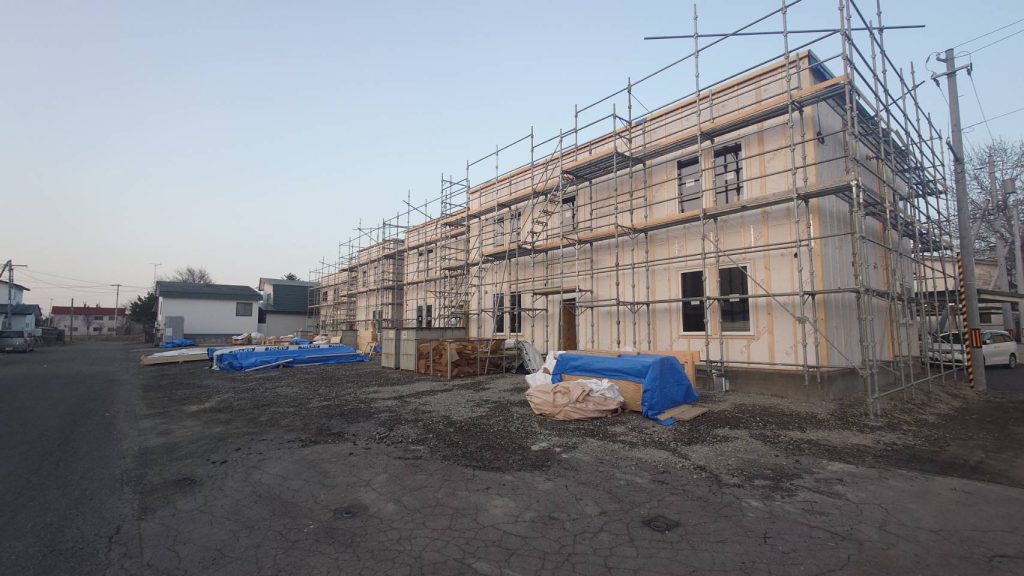 現在建築中の当社企画アパート、帯広市内は4棟(横並び2棟が2か所)進行中です。建築待ちなのが3棟も、間もなく始まります。