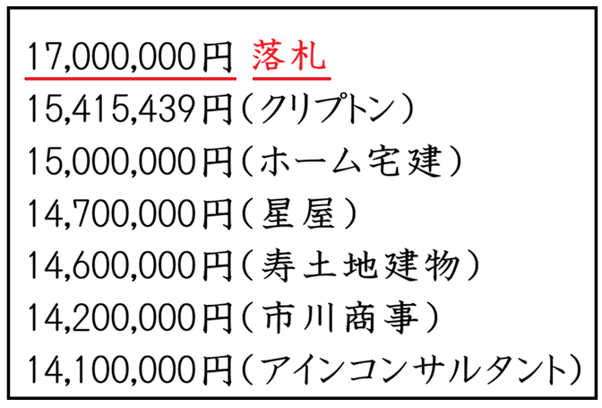 少し開きがあったんですが、今日の競売、無事落札となりました。こんな結果でした。