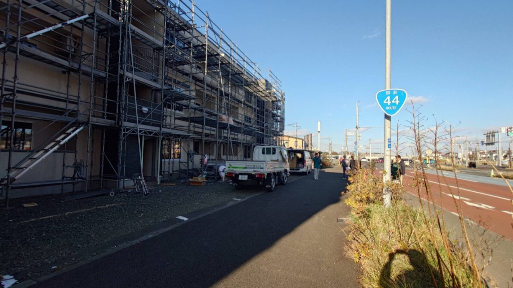 釧路出張でした。建築中のアパート、縁石の切り下げで現地打ち合わせでした。歩道と車道を分けている縁石を切り下がて、車が入りやすいようにするするのは、勝手に行うことができず、国土交通省のお役人さんとの立ち合いで、現地を確認が必要になります。