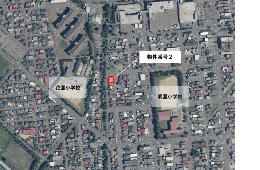 我々が狙っているのは、2番目の西6条南22丁目。113坪の土地に、古い建物が載っている物件です。3方向(北、西、東)に道路がついている(接道しているとも言いますが。。)不動産です。