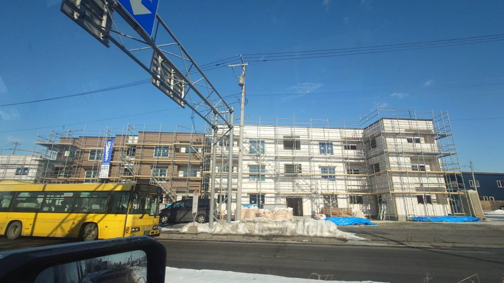 3月末完成。我々の企画の新築アパート3棟の工事進行中です。完成するとこんな感じになります。