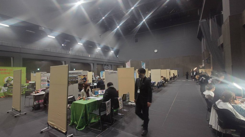 十勝管内の企業の就職フェアがあり、我々もブース出しておりました。40社くらい出ていたでしょうか。。中途採用の方がメインです。10名ほど面談させてもらいました。選んでいただけるような会社になるように頑張ります。帯広の体育アリーナで開催されました。会場こんな感じでした。。