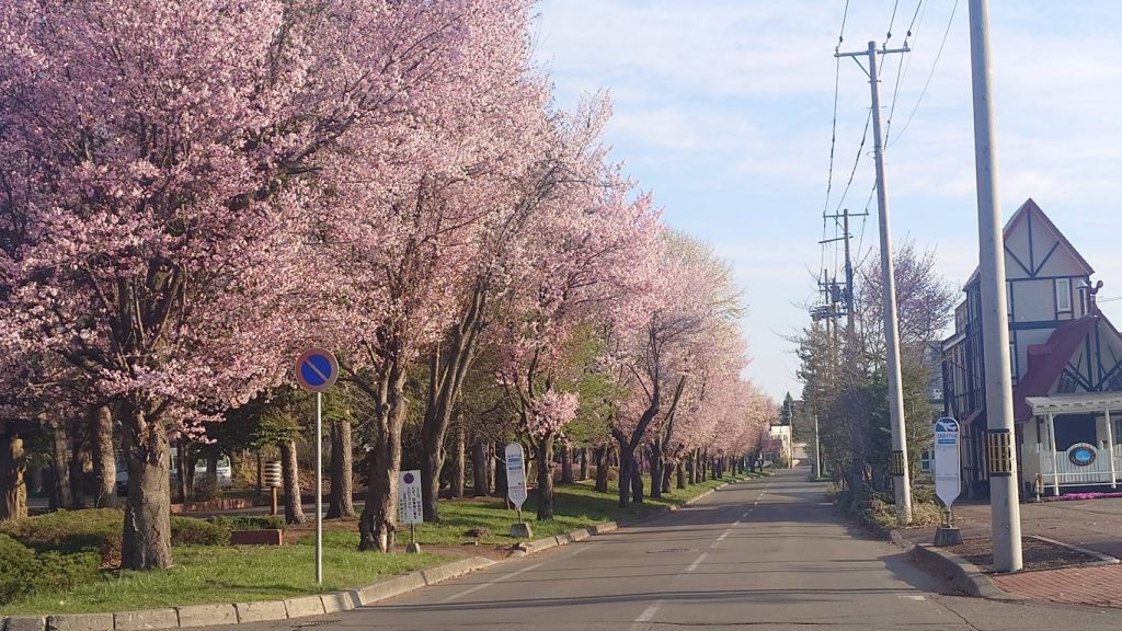 帯広市トテッポ通り。今朝の様子です。桜満開です。綺麗ですね。